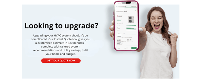 Contractors often pair this with a hero image and straightforward messaging such as: “Looking to upgrade? Get your online quote now—rebates included.” This quickly communicates value and encourages visitors to start the quote process.